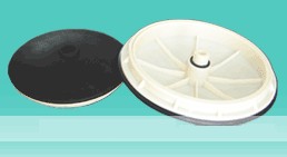 膜片式微孔曝氣器是80年代研制的新型曝氣裝置,該裝置曝氣氣泡小、氣液面積大,氣泡擴散均勻,不會產(chǎn)生孔眼堵塞,耐腐蝕性強。但通過多年的運行出現(xiàn)了一些難以解決的不足。如:膜片脫落、膜片撕裂、膜片打不開、污泥進入支氣管等問題。因此該公司研究開發(fā)部與國內(nèi)外許多院校和科研單位合作吸收國際先進經(jīng)驗攻克了各項技術(shù)難關(guān),對膜片曝氣器進行了改革,研制開發(fā)了二十一世紀國際先進水平的新一代盤式膜片微孔曝氣器。