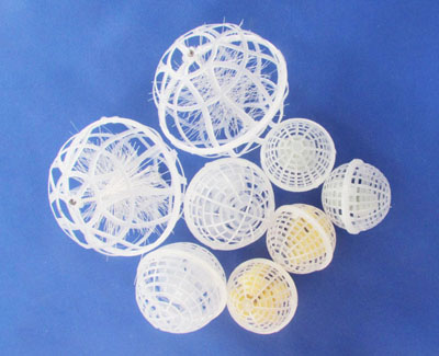 球形懸浮填料, 又稱(chēng)孔旋轉(zhuǎn)球形懸浮填料 ,是對(duì)國(guó)內(nèi)處理污水、生物膜法處理技術(shù)采用的多種填料中開(kāi)發(fā)的新系列產(chǎn)品。分內(nèi)外雙層球體,外部為網(wǎng)狀球體,內(nèi)部為旋轉(zhuǎn)球體。